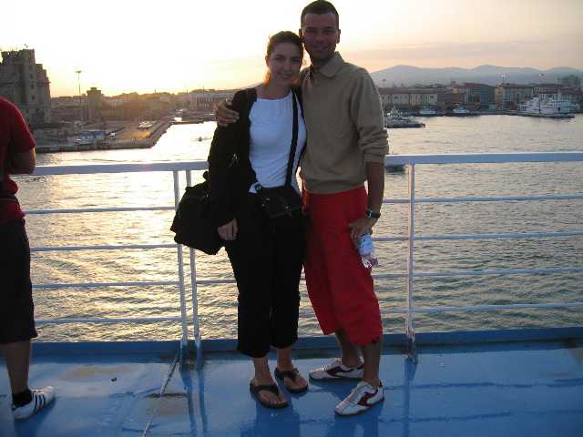 Carlo and I as we are arriving in Livorno on the ferry early in the morning.