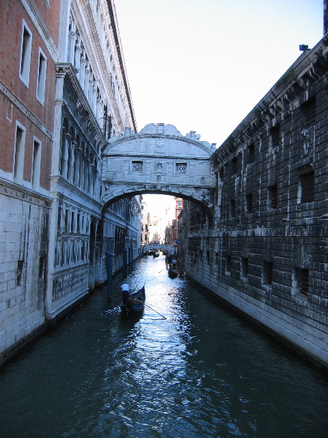 | The Bridge of Sighs. It is said that if lovers kiss while going under this bridge, they will be in love forever...ironically it was also the bridge that prisoners went under and took their last breath, as they were on their way to die. | ||