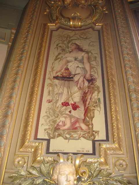 Life-size needlepoint pictures.