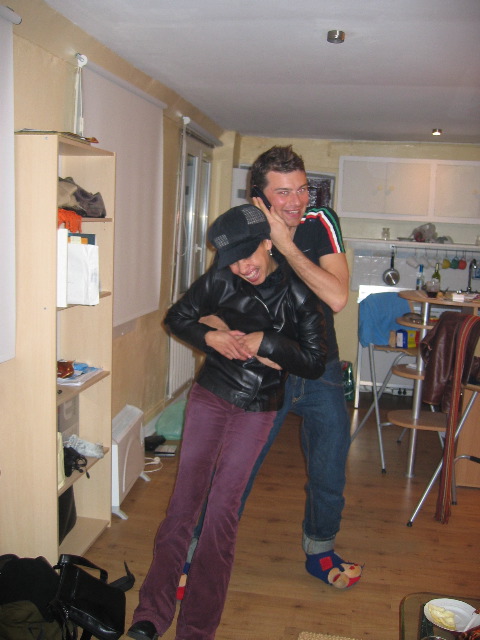 Ronda and Carlo goofing off while Carlo is on the phone.